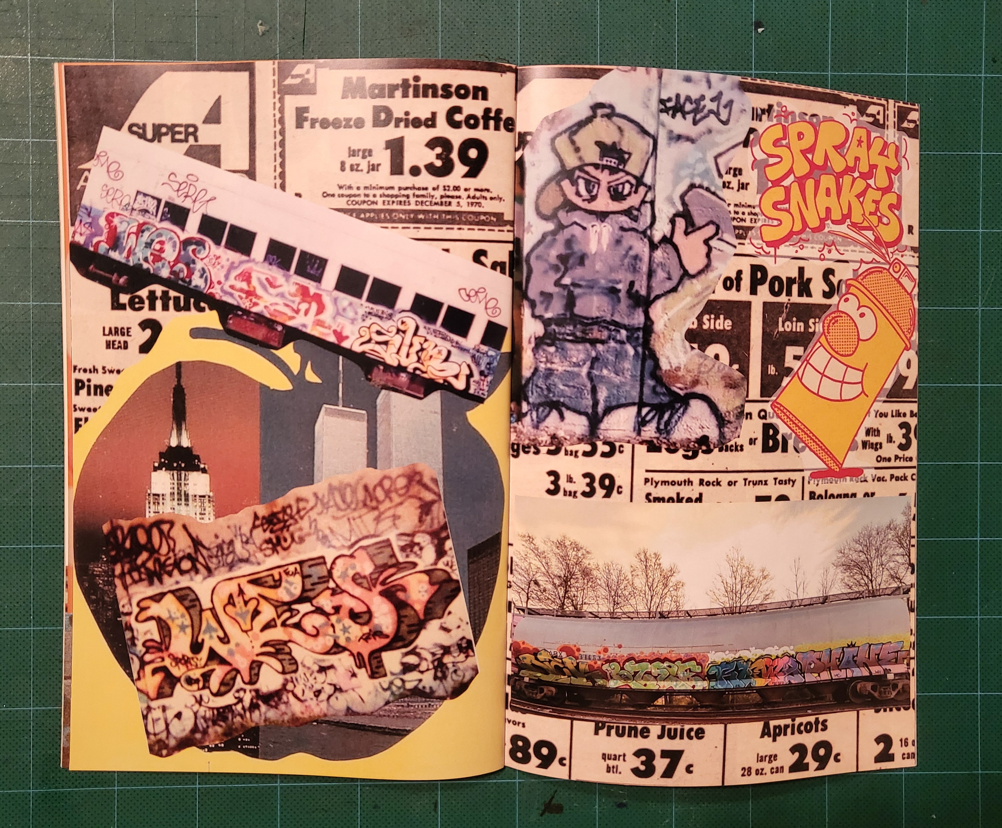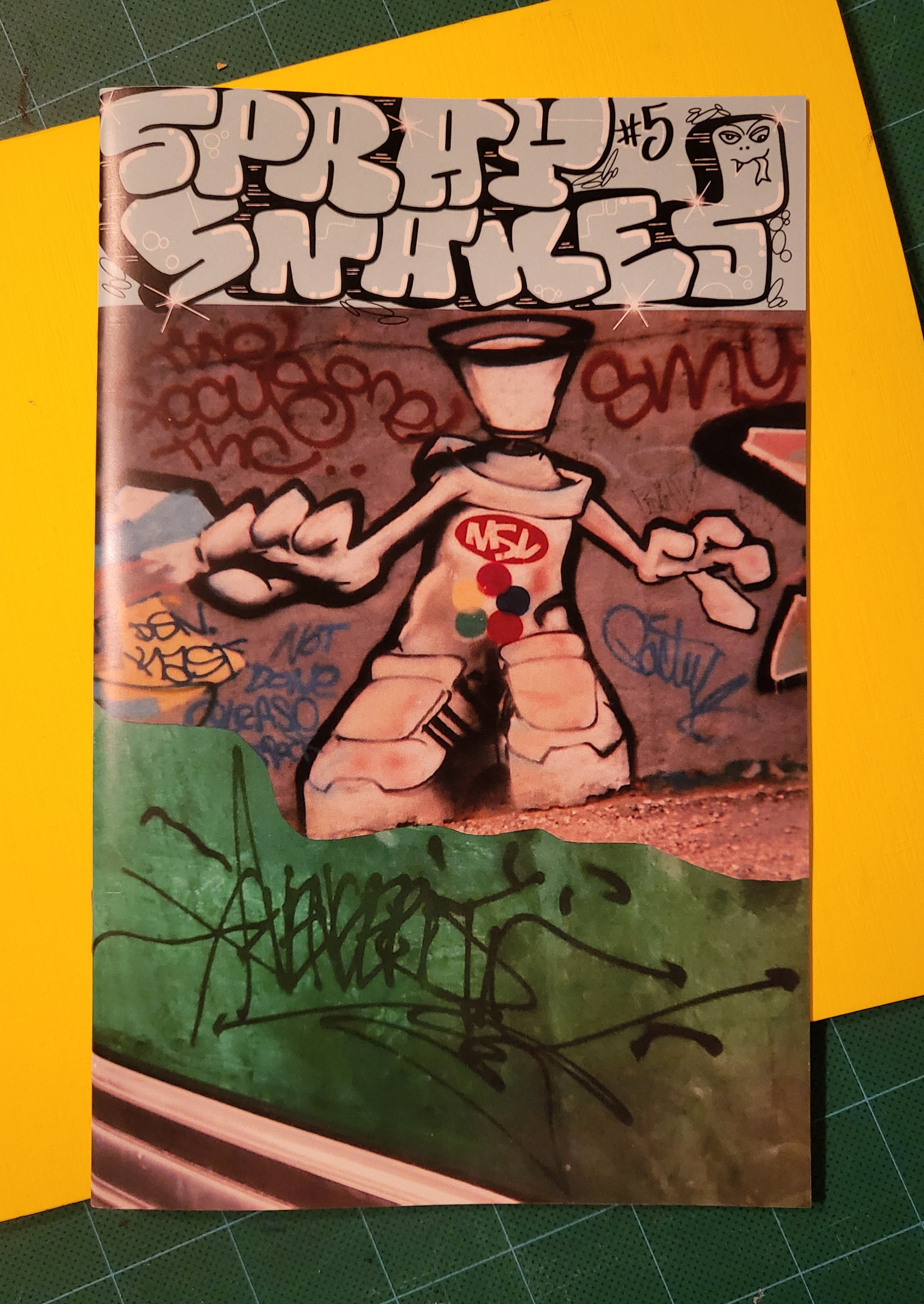 Spray Snakes issue 5 features 35mm photos, collages, action shots, comics, freights, and a section on Southern Italy graf -28 pages, Full color -1.5" Button and Hand drawn sticker included -USPS Tracking provided